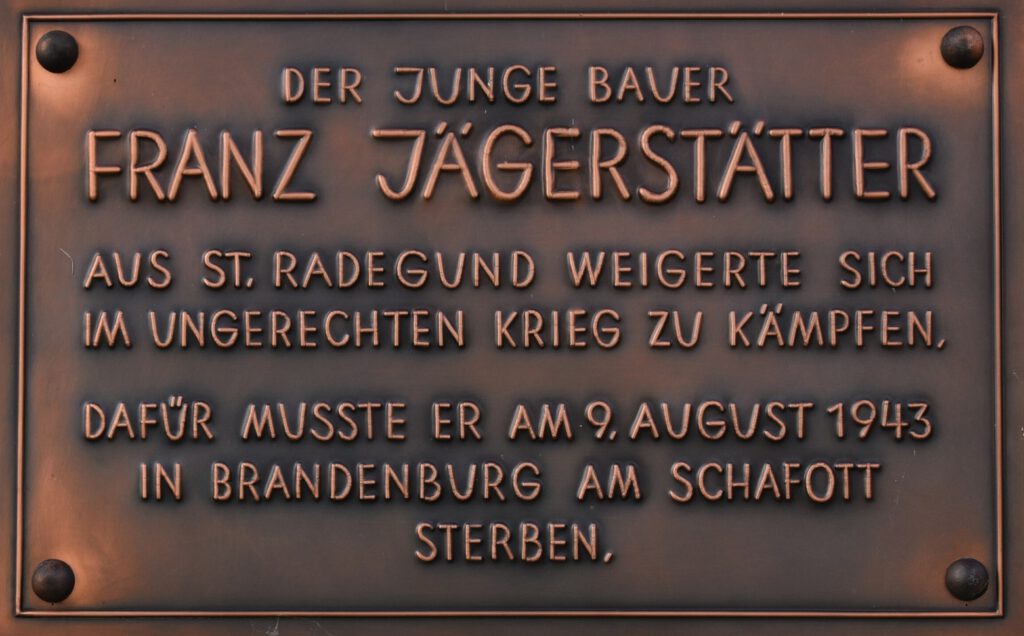 Der österreichische Bauer Franz Jägerstätter weigert sich aus Gewissensgründen standhaft, für die Wehrmacht zu kämpfen. und 1943 in Brandenburg von den Nationalsozialisten hingerichtet wurde.
