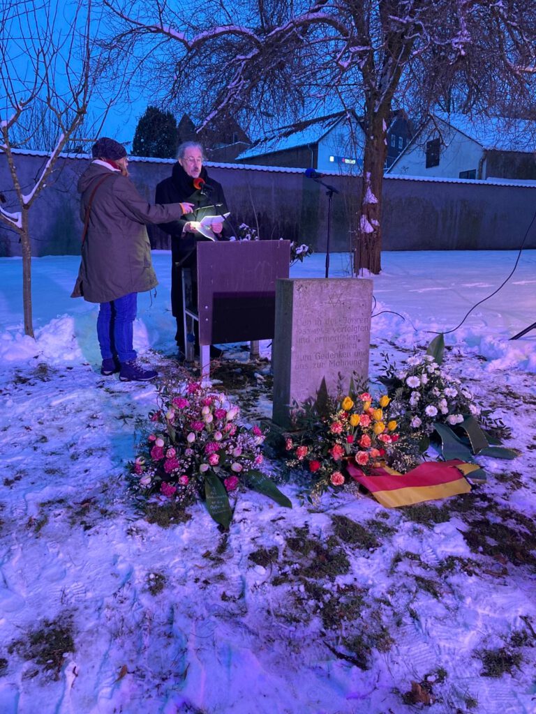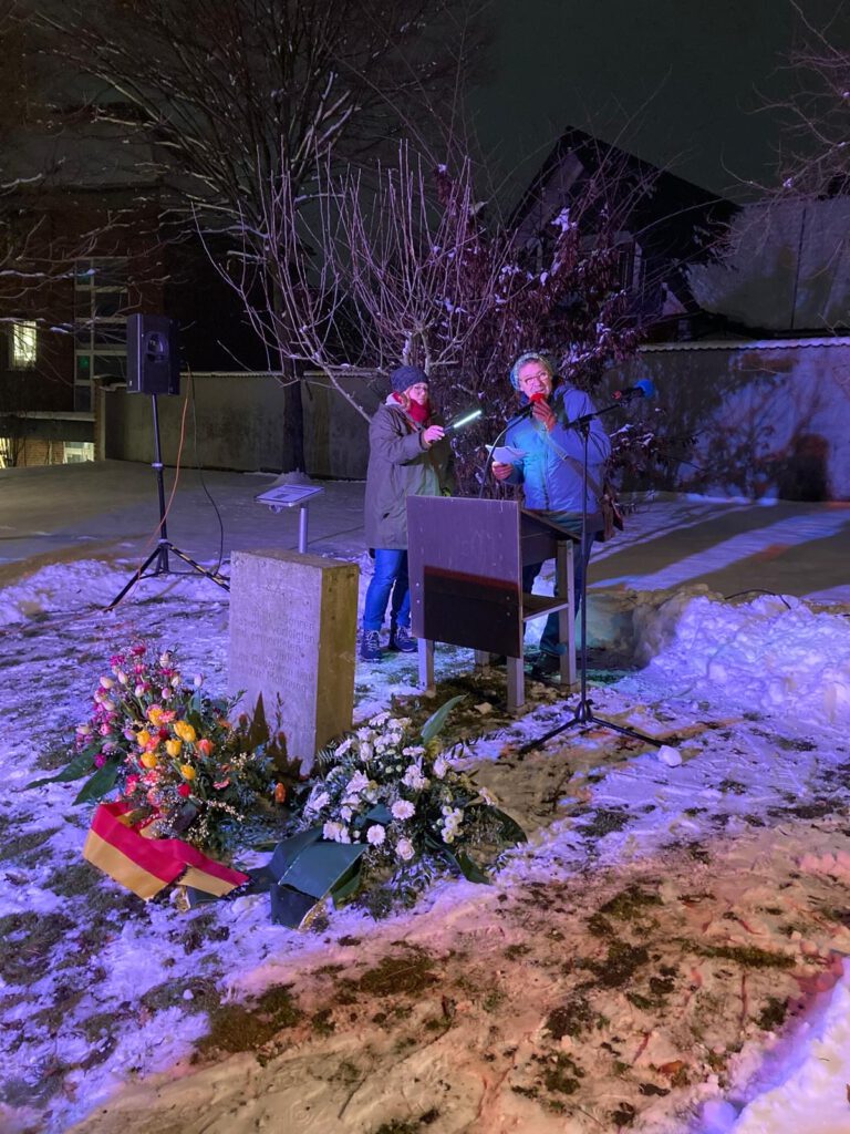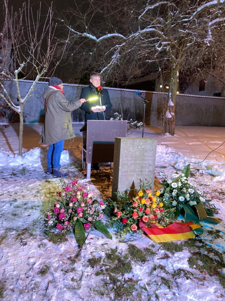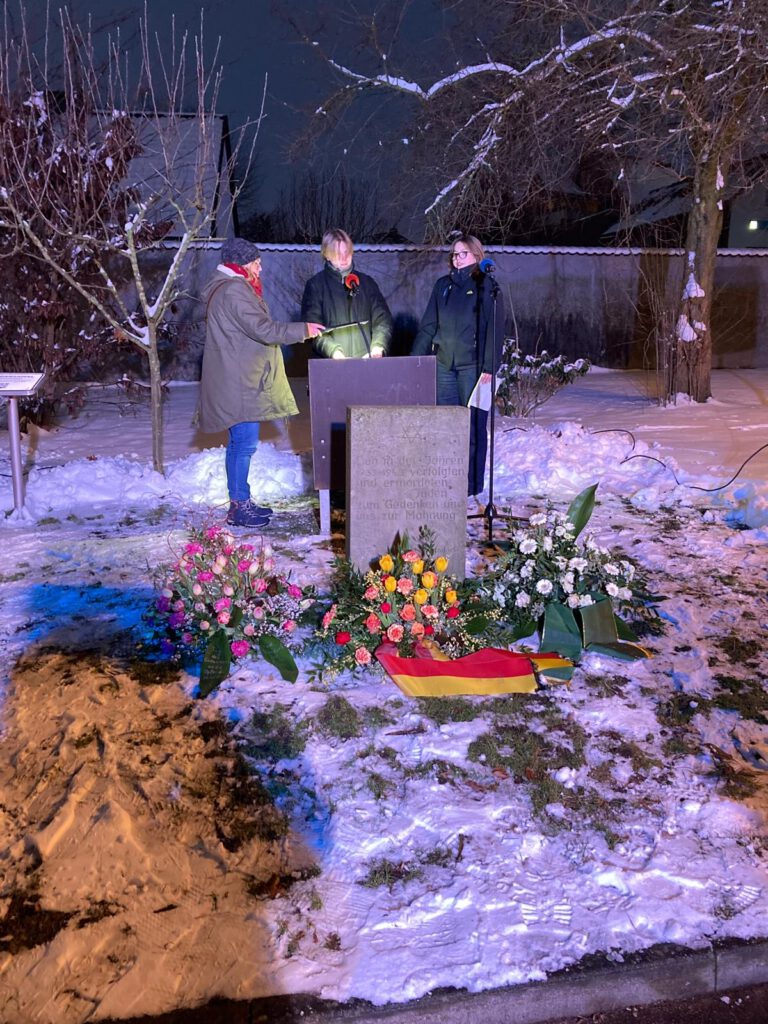 Am 27.1. versammelten sich ca. 60 Menschen aller Altersgruppen am Mahnmal für die verfolgten und ermordeten Juden in der Kurhausstraße.
