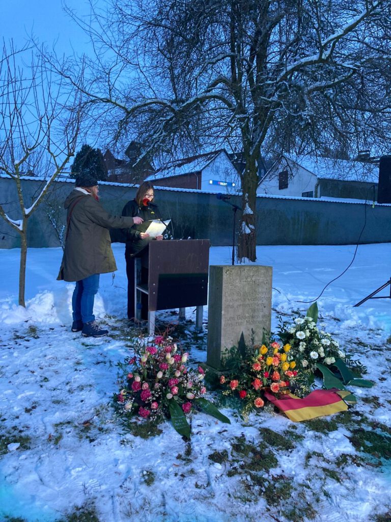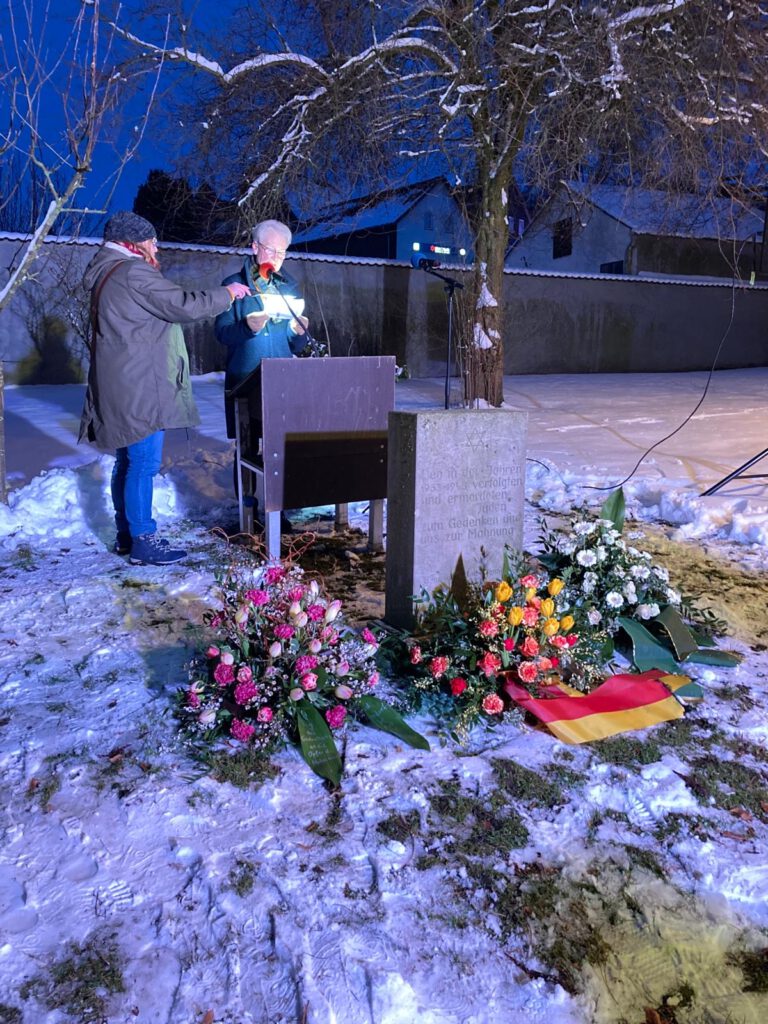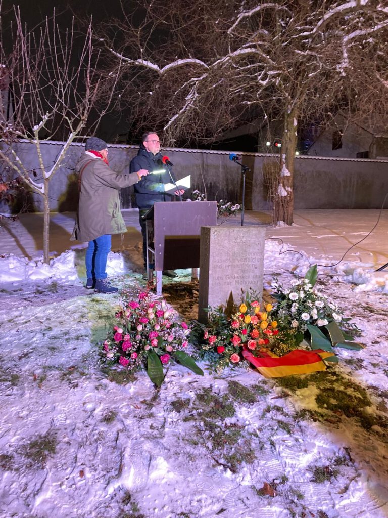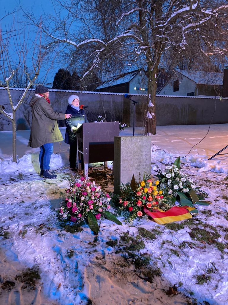 Am 27.1. versammelten sich ca. 60 Menschen aller Altersgruppen am Mahnmal für die verfolgten und ermordeten Juden in der Kurhausstraße.